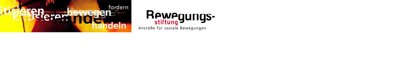 "Geist ist wohltätig und edel nur im Gehorsam gegen die Wahrheit; sobald er sie verrät, sobald er die Ehrfurcht ablegt, käuflich und beliebig biegsam wird, ist er das Teuflische in Potenz, ist sehr viel schlimmer als die animalische triebhafte Bestialität, welche immer noch etwas von der Unschuld der Natur behält." Hermann Hesse _ ATTAC "für eine solidarische Weltwirtschaft - gegen neoliberale Globalisierung Ich möchte euch nun eine meiner Meinung nach sehr interessante Stiftung vorstellen namens "Bewegungsstiftung"! In einer Zeit, in der ständig neue negative Veränderungen auf uns alle zukommen, erscheint es mir wichtig, auf soziale Initiativen hinzuweisen, die sich gegen diese Entwicklung stemmen und nach sozialen Alternativen suchen, damit in unserer auf Materialismus gegründeten Gesellschaft das menschliche Antlitz dieser Gesellschaft nicht verloren geht. Ich persönlich gewinne mehr und mehr den Eindruck, dass seitdem die Sowjetunion und somit der politische Gegenpart zum Kapitalismus reinster Form nicht mehr existiert, der Kapitalismus ungeniert seine Forderungen nach mehr Leistung für immer weniger Geld durchzusetzen versucht. Ich kann mich nicht erinnern, in der Vergangenheit solch unverschämte Forderungen von Politikern und in der Wirtschaft Verantwortlichen gehört zu haben, wie ich sie nun ständig hören muss. Sie sind dabei, eine Arbeitsmarktpolitik, die auf Konsens zwischen Arbeitgebern und Arbeitnehmern gegründet war, einseitig aufzukündigen. Es ist an Dreistigkeit nicht zu überbieten. Warum ist das so? Die Antwort lautet für mich: Zu Zeiten des real existierenden Sozialismus, als größte Macht davon die Sowjetunion, war der Westen darauf bedacht, die sozialen Errungenschaften zu erweitern, um in den sozialistischen Staaten den Neid der Bevölkerung zu wecken, zu demonstrieren, wie gut es hier den sogar einfachen Arbeitern geht. Ziel war, das System des Sozialismus durch Demagogie zu zerstören, was ja auch gelungen ist. Nun meinen die Kapitalisten, Ihr wahres Gesicht zeigen zu können, es wird kaum noch Rücksicht auf Arbeitnehmerinteressen genommen.........den beginnenden Sozialabbau können wir täglich verfolgen..........wirklich täglich!!!! Deshalb sind für mich Stiftungen wie die Bewegungsstiftung so wichtig, um zu verhindern, das die Armut breiter Bevölkerungsschichten zurückkehrt, und die damit verbundenen gesellschaftlichen Veränderungen, wie Kriminalität, Gewalt, Diebstahl, Raub und Mord! Auf das Bild klicken und Ihr werdet zur Webseite der Bewegungsstiftung weitergeleitet: Hier ein Zitat der Idee die hinter der Bewegungsstiftung steckt: "Die politischen und sozialen Menschen- und Bürgerrechte durchzusetzen, unsere Lebensgrundlagen zu schützen und den Frieden zu wahren - all das benötigt politisches Engagement von unten. Daher schließen sich Menschen immer wieder in sozialen Bewegungen zusammen. Sie versuchen so gesellschaftlichen Wandel herbeizuführen oder eine Veränderung zum Schlechten zu verhindern. 2002 wurde die Bewegungsstiftung gegründet, um Kampagnen von unten mit finanziellen Mitteln und Know-how zu unterstützen und damit politischen Wandel aktiv zu gestalten. Mittlerweile haben fast 50 StifterInnen mehr als 520.000 Euro in die Stiftung eingebracht. Bisher haben wir soziale Bewegungen mit rund 75.000 Euro gefördert." Zitat der Bewegungsstiftung